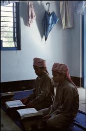 BANGLADESH. Chittagong. Students of a madrassa (Islamic school) study the Koran in the room which is also used as their dormitory.