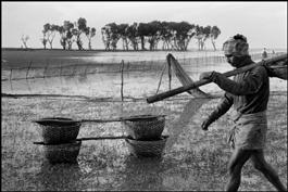 BANGLADESH. Chittagong. A fisherman carries his day's catch in a basket.