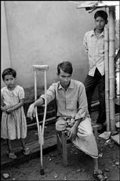 BANGLADESH. Mymesingh. Resting in the courtyard of his modest home, 18 year old Rajiv had his right leg amputated after a series of bomb explosions, claimed by Jihadists, targeted three cinemas on December 12, 2002.