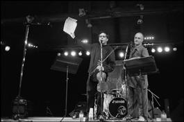 From left to right, American jazz musician Mark FELDMAN (violin) and Austrian jazz musician Wolfgang PUSCHNIG (saxophone, flute). Saturday, 29th April, 2000.