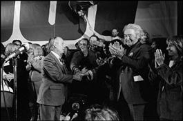 René LEVESQUE, Prime Minister of Quebec, supporting the referendum in favour of Quebec independence from Canada.