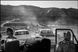 LIBYA. Al Juffra region. A chief area of concern is a former military compound in southern Libya, where chemical weapons were stored in a number of bunkers. Today, the sprawling compound is heavily guarded by Libyan soldiers in preparation for the destruction of these weapons by Libyan authorities under the supervision of OPCW inspectors. In these photographs, a new team of OPCW inspectors has just arrived to begin their verification work. A helicopter is kept on site for swift evacuation in the event of any safety or medical incident. 2013.