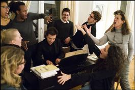France. Paris. 2013. Opera singing teacher has her students over for a drink.