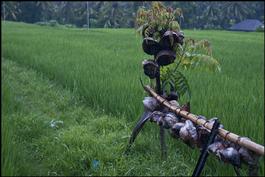 INDONESIA. BALI. Shamanic protection in a rice field? Decoration...