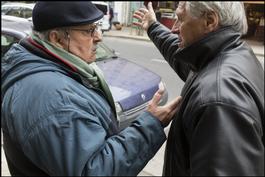 75010. Faubourg St. Martin. Political discussion. FRANCE. Paris....