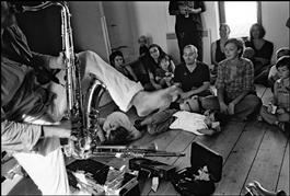 French musician Laurent Dehors (saxophones, clarinets, bagpipe) during his first solo at the "Scène La Souris verte".