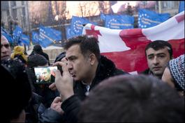 Georgian ex-President Mikheil Saakashvili visiting Euro-Maidan anti-government protest with opposition leader V.Klitshko and Arseniy Yatsenyuk, who is now Prime Minister. ( some pictures of them with Georgian activists).