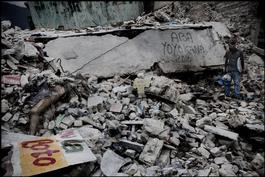 A dead man's body is seen in a destryed building. On January 12 2010, Haiti was hit by an earthquake of magnitude 7, which mainly struck the area around the capital city. It left an estimated 200 000 dead, and over 1 million displaced people. The Caribbean island is one of the poorest countries in the world and is plagued by political unrest. In the wake of this devastating natural catastrophe, members of G7 countries decided to drop the debt owned by the Haitian state.