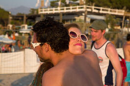 FRANCE. Calvi. Rock party on the beach. 2013.