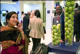 SWITZERLAND. Davos. Annual Meeting of the World Economic Forum. 2014. Telephones and apples.