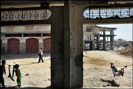 Children playing along the Egyptian border in southern Rafah. Gaza, Palestine 2011