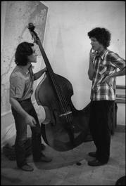 FRANCE. Brittany. Cotes du Nord (renamed Cotes d Armor since 27th Feb. 1990). Chateau de la Roche Jagu. In the municipality of Ploezal. Jazz E Breizh Festival 81. Workshop double bass by Jean Paul CELEA in one of the room of the first floor. On the left, Jean Paul CELEA and the trainees of the workshop. Thursday 20th August, 1981.
