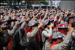 SOUTH KOREA. Seoul. 2014. Demonstration of employees of a telecommunication company.