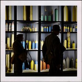BELGIUM. Paeschendaele. 2013. German reenactors visit the WW 1 museum, section with tank and artillery shells at display.