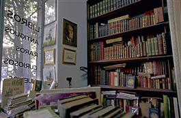 REPUBLIC OF ARGENTINA: Buenos Aires:Borges's portrat in in a shop of old books.