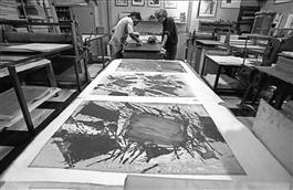 ITALY, Milan: italian artist Sandro MARTINI Working in the atelier of the printer Giorgio UPIGLIO.