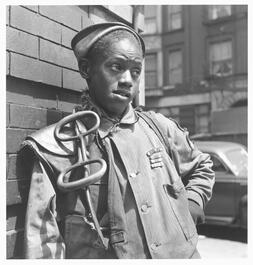 USA. Illinois. Chicago. 1948. Young ice man, with World War II...