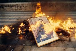NICARAGUA. Managua. June 1978. Car of a Somoza informer burning...