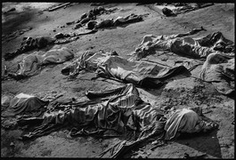 RWANDA. 1994. The corpses of refugees litter the floor of a classroom...
