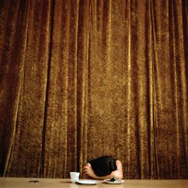 GEORGIA. Tbilisi. A woman lies on the table in the dinning room...