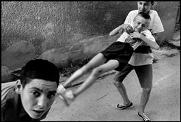 BOSNIA. Sarajevo. 1993. Children on a water run in Kranjcevica....