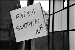 BOSNIA-HERZEGOVINA. Sarajevo. 1993. Warning of sniper fire for...