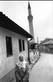 BOSNIA-HERZEGOVINA. Sarajevo. 1993. Woman in hijab in the old...