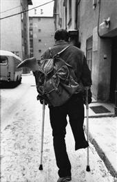 BOSNIA-HERZEGOVINA. Sarajevo. 1993. A man on crutches carries...