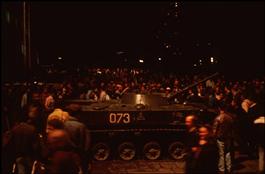 Nuit du 20 au 21.8.91. Foule dans la rue malgré le couvre-feu....