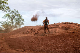 BURKINA FASO. Hounde. 2021. Quarry workers at the Hounde red...