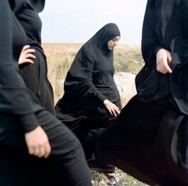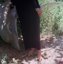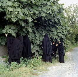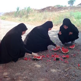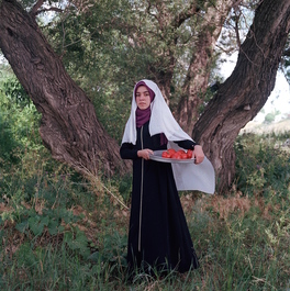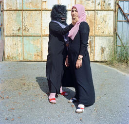 TURKEY. Istanbul. 2018. Kevser, who is shy, uses a palm leaf...