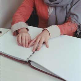 TURKEY. Istanbul. 2020. Asiye, a blind student, learns to read...