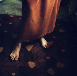 TURKEY. Rize. May 29, 2017. Zehra (12) stands with her bare feet...