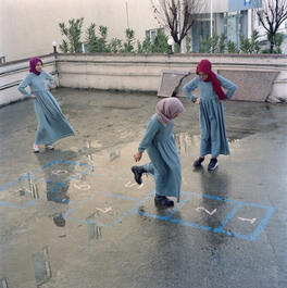 TURKEY. Istanbul. 2019. Students skip in the yard of a Qur’an...