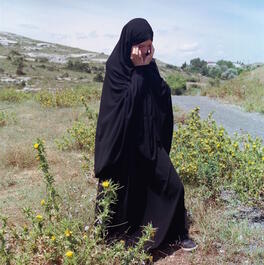 TURKEY. Istanbul. 2018. Kevser, who is shy, uses a palm leaf...