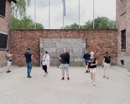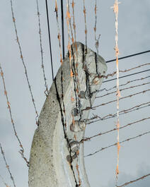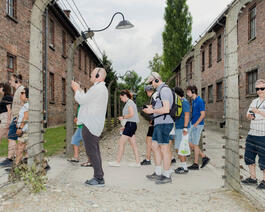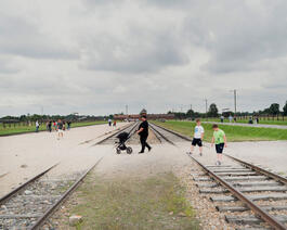 On assignment for Harper's Magazine in July 2024, Rafal Milach documented several Holocaust memorials in Poland, such as the POLIN Museum of the History of Polish Jewry in Warsaw and the Galicia Jewish Museum in Krakow, with a special emphasis on Oświęcim (Auschwitz in Polish). At the Auschwitz-Birkenau State Museum in Oświęcim, tourists with headset guides flock to the infamous site every day. The site includes the main concentration camp at Auschwitz I and the remains of the concentration and extermination camp at Auschwitz II-Birkenau.