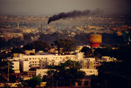 INDIA. Bhopal disaster. 1984. Smoke coming from chimneys in Bhopal....