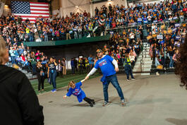 USA. Lansing, MI. 2024. The crowd gathers to hear Vice President...