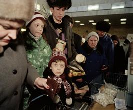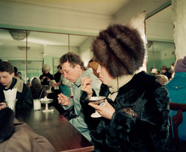 In 1992, one year after the fall of the USSR, Moscow and Saint Petersburg are in full transition. From a planned and bureaucratic communist system, Eltsine's Russia embraces liberal capitalism, fashion boutiques, fast food chains, the Western soft power seemed to have reached its goal. However, Western habits are not yet within everyone's reach. Martin Parr is the witness of a fragmented society.