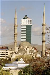 TURKEY. Konya. A modern building arising among two minarets....