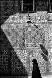 TURKEY. Istanbul. A Muslim woman in full veil at the shrine of...