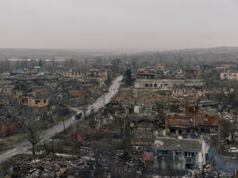 UKRAINE. Bakhmut. 26 January 2024. View over destroyed Bakhmut....