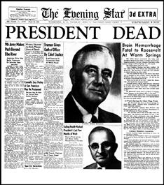 USA. 1945. Cover of the Evening Star. The death of Franklin D....