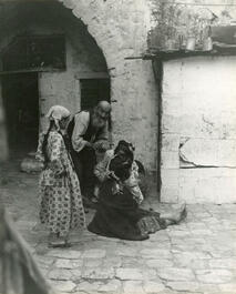 MANDATORY PALESTINE. Tel Aviv. 1936. Yemeni Jewish refugees offer...