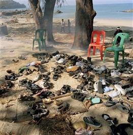 THAILAND. Khao Lak. A pile of shoes assembled by Thai rescue...