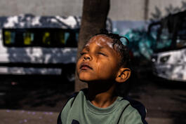 MEXICO. Ciudad de Mexico. APRIL 11 2025. A boy plays with his...