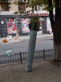 UKRAINE, Kyiv, 2017/8. Missile shell from Donbass war in front...
