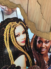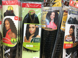 USA. Harlem, NYC. 2017. Choices for braiding locs at Orange Beauty...