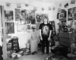 GB. England. Hull. 2017. Tom Lees in his bedroom in Hull.