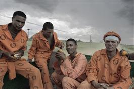 SOUTH AFRICA. Cape Town. 2004. Prisoners climb over a dividing...